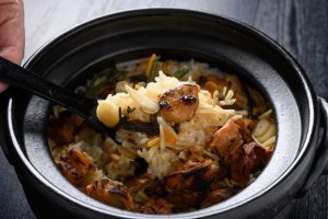 広島郷土料理専門店酔心の名物の「釜めし」です。