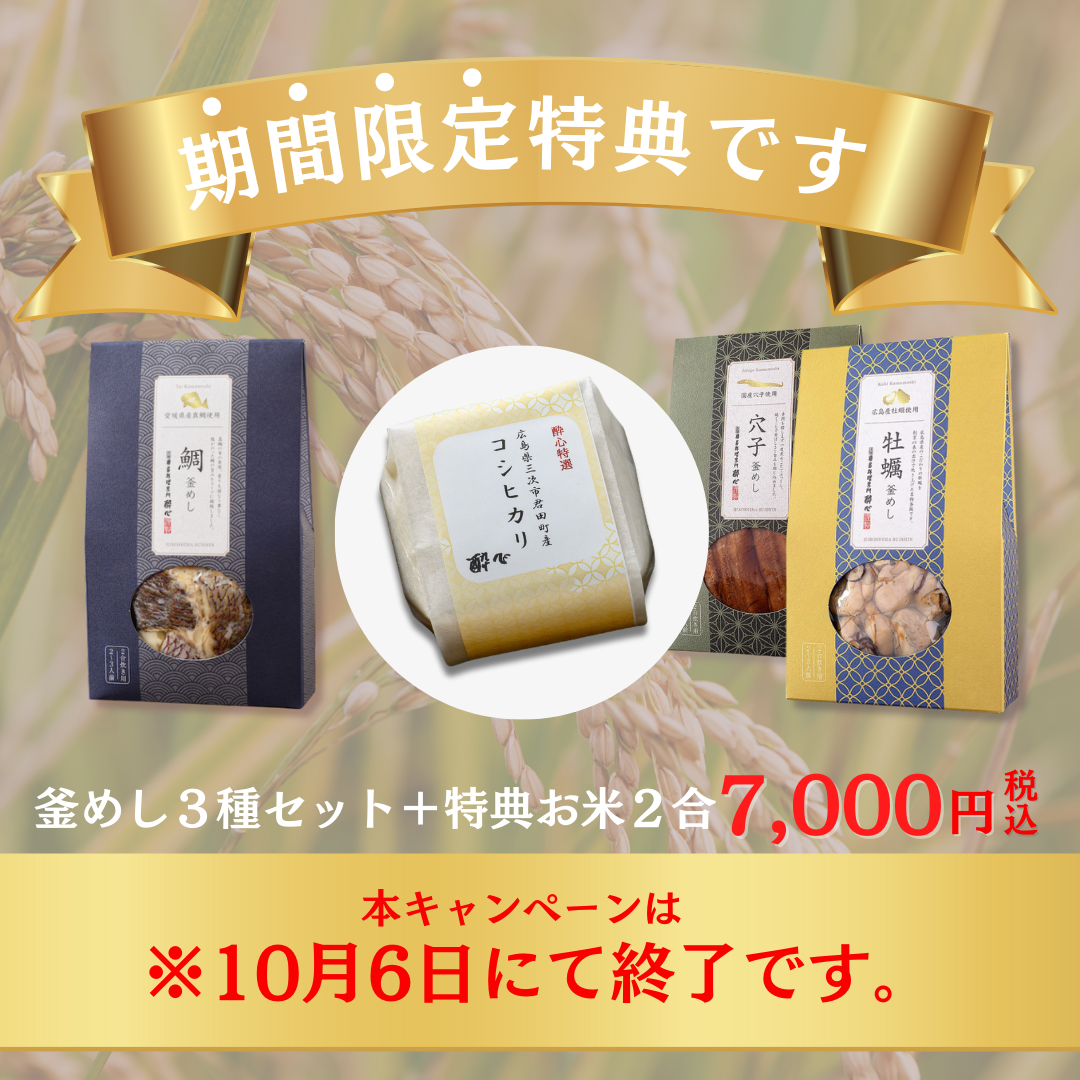 最高級の釜めしを美味しいお米でぜひ、