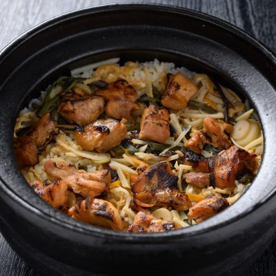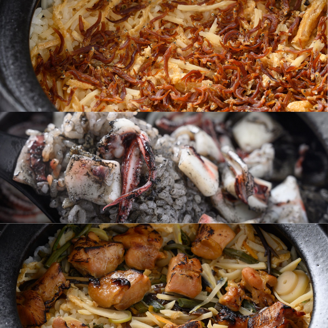 鶏肉の旨みに季節の山菜が風味を添える、ボリュームも満点な釜めしです。