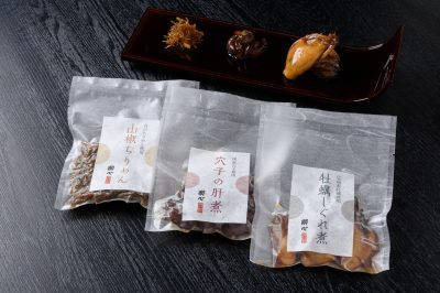 山椒ちりめん・穴子の肝煮・牡蠣しぐれ煮