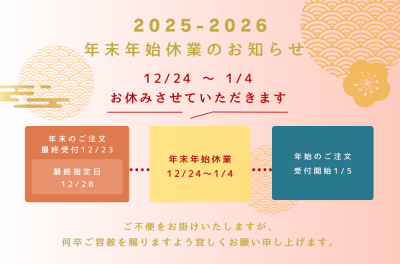 《12/23受付まで》2025-2026年末年始休業のお知らせ 2025/11/21(金) お知らせニュース 2025-2026 年末年始休業のお知らせ 日頃よりご愛顧いただきありがとうございます。 酔心オンラ […] 続きを読む
